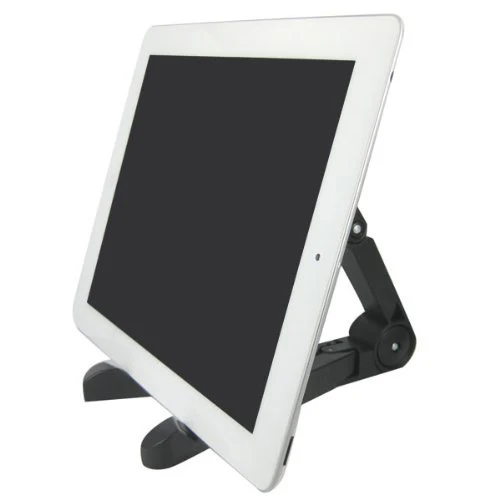 A convenient portable tablet holder that folds to save space. Perfect for travel, home and office. This stand is a travel-friendly tablet computer stand designed for use with nearly all new lightweight tablet computers such as the iPad, e-Readers, Nook, Galaxy Tab and others. A quality user-friendly stand is an essential tablet accessory for enhancing your mobile computing experience. The desktop stand frees up your hands so you can watch movies, read an eBook or recipe, surf the web, conduct a presentation, view photos, read displayed sheet music, or conduct any other activity that would benefit from a foldable type of stand.Product Information